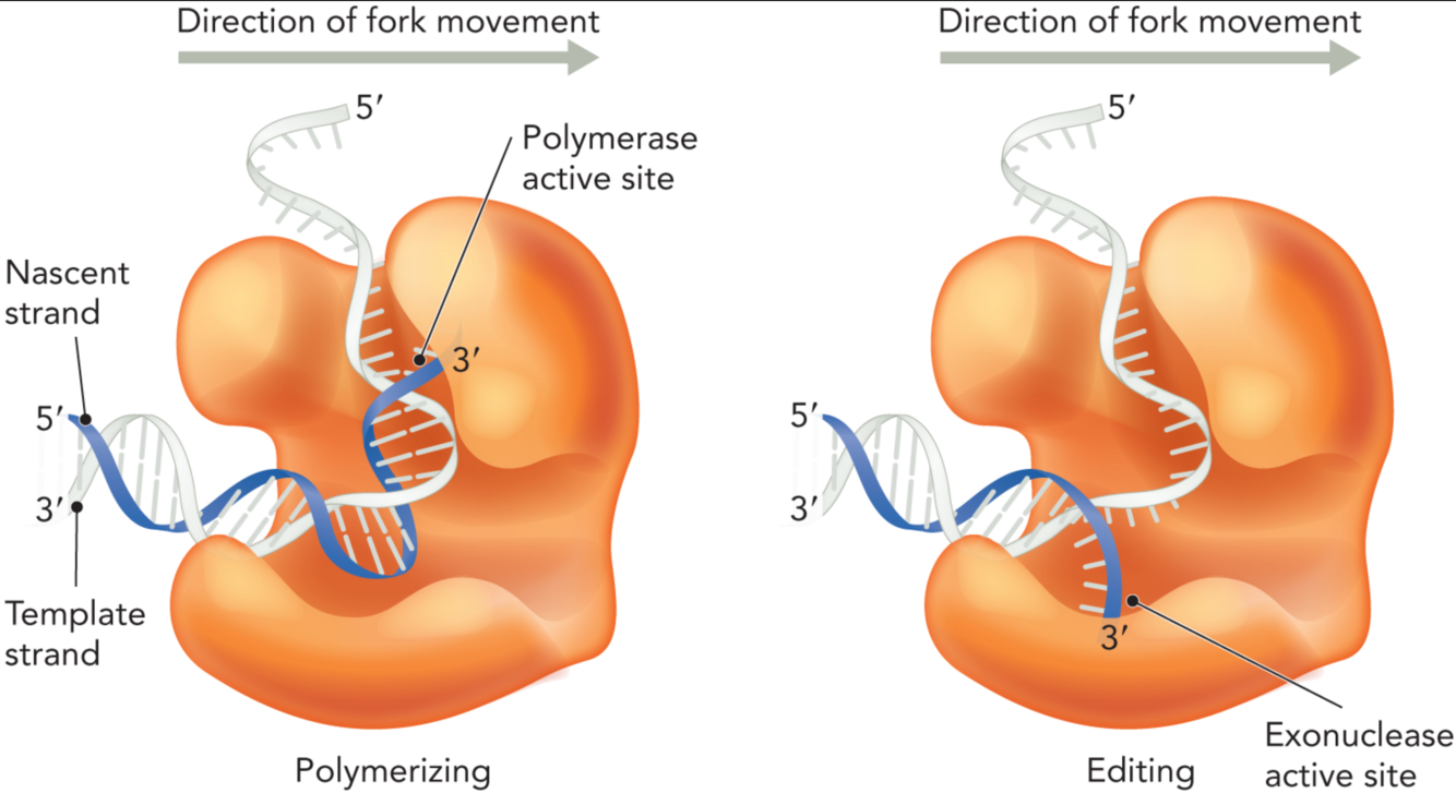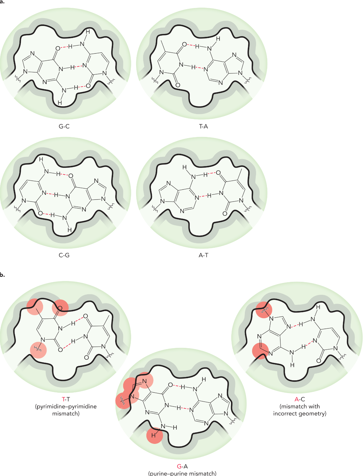 Shape of the DNA polymerase active site will only fit the correct pairs
