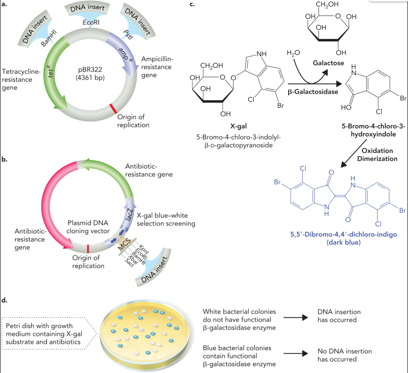 Uses plasmids, restriction enzymes, and ligases to isolate genes and express the protein product
