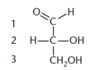 the numbering of C atoms in a monosaccharide follows the rules described in orgo, what does this mean for monosaccharides? (2)