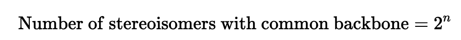 what determines the number of possible stereoisomers of a compound + eqn?