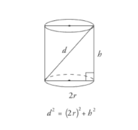 When a cylinder is inscribed in a sphere, the sphere’s diameter is equal to the diagonal of the rectangle formed by the cylinder’s heights and diameter.