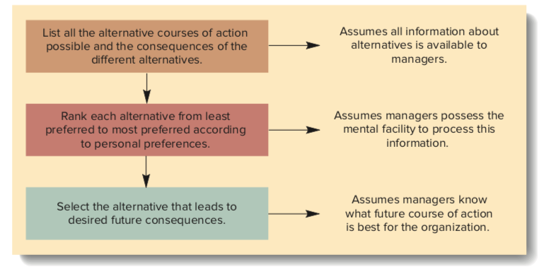 A prescriptive approach to decision making based on the assumption that the decision maker can identify and evaluate all possible alternatives and their consequences and rationally choose the most appropriate course of action.