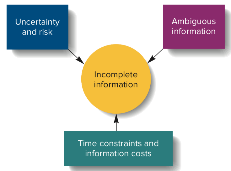 An approach to decision making that explains why decision making is inherently uncertain and risky and why managers usually make satisfactory rather than optimum decisions.