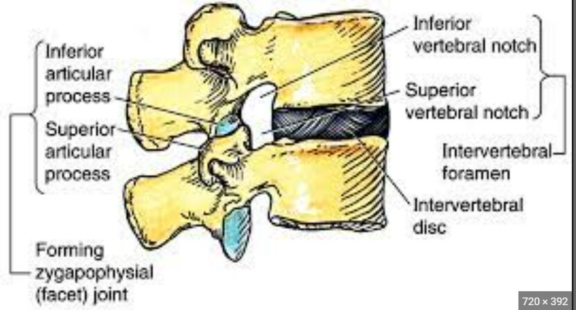 -lying between the superior and inferior processes is the ZYGAPOPHYSEAL or FACET JOINT