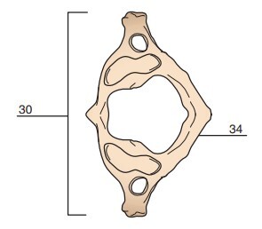 -no laminae or spinous process, replaced by the anterior (30) and posterior arch (34)