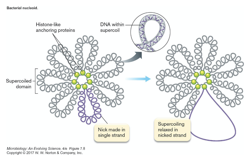 a nucleoid consists of DNA arranged in loops w boundaries held up by histone-like anchoring proteins