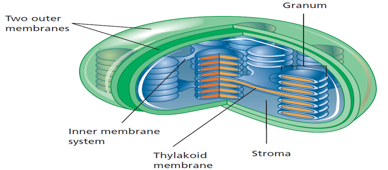 Photosynthesis is a series of reactions that occur in the stroma and thylakoid membrane system of the chloroplast.