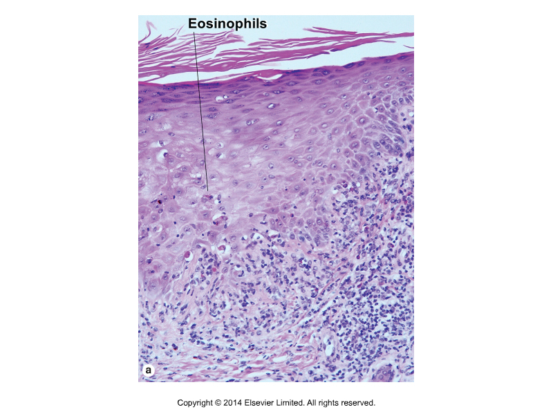 Lichenoid interface dermatitis with eosinophils and parakeratosis
