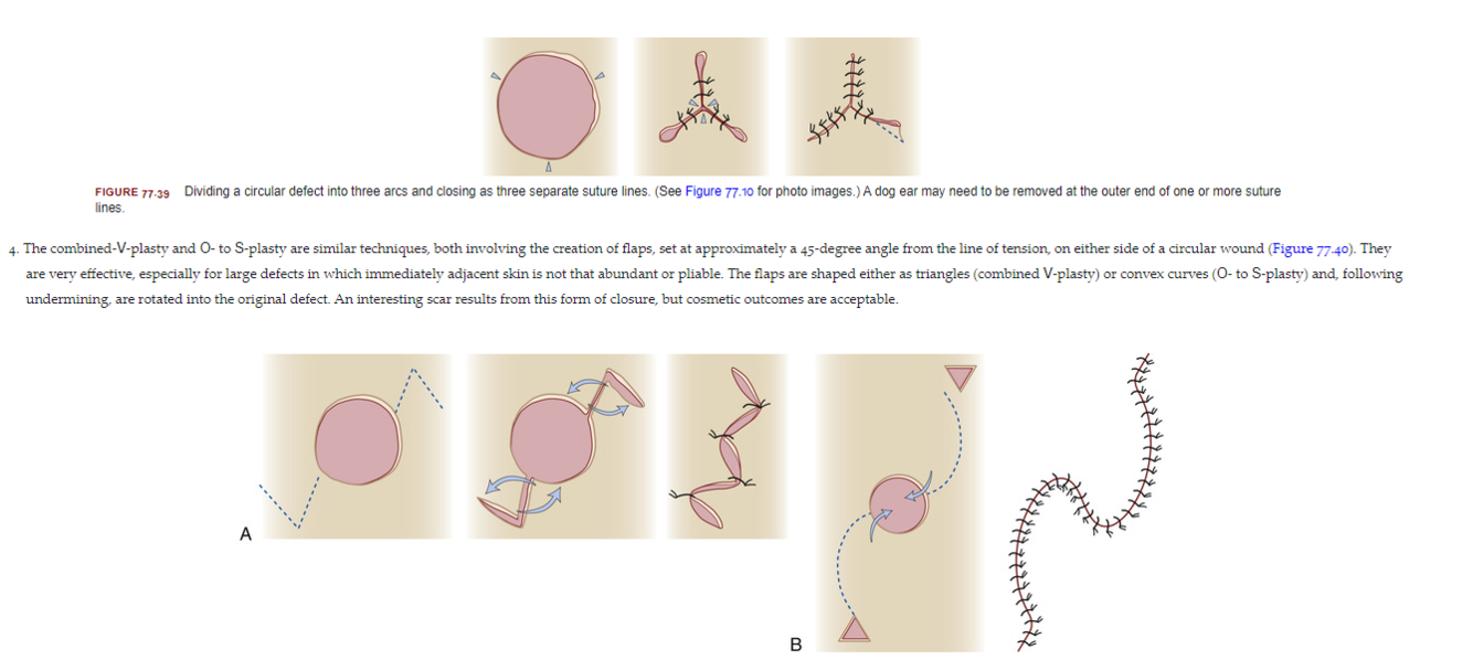 • M-plasty (at 1 or both ends of the end of a fusiform incision)