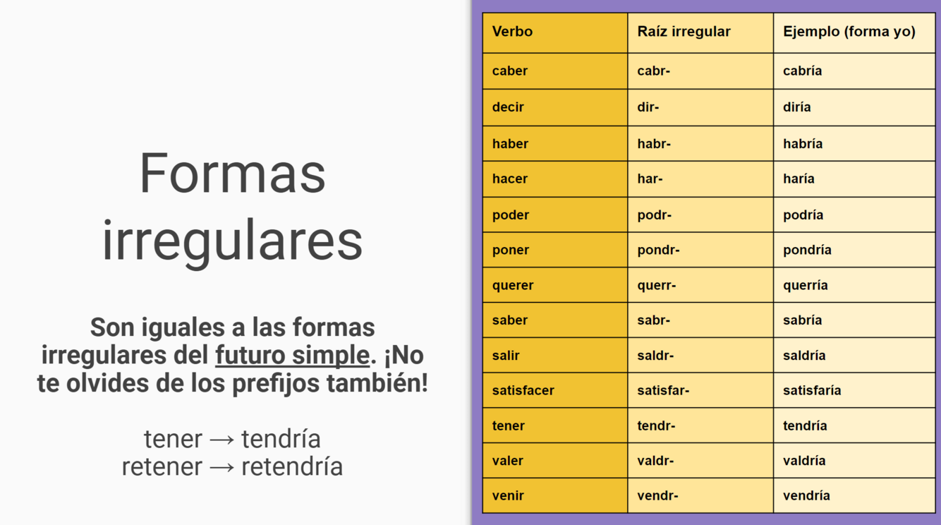 Irregular verbs in the conditional
