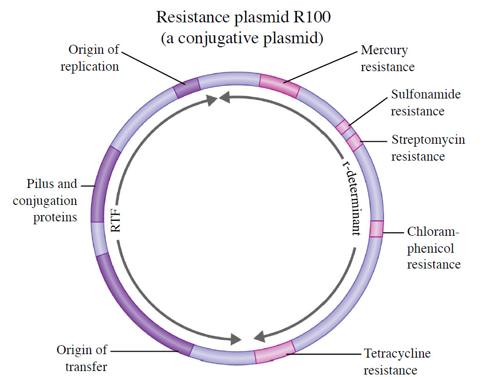 Are genes for antibiotic resistance, virulence, metabolic pathways, bacteriocins, and transfer genes located on the bacterial chromosome or plasmid?