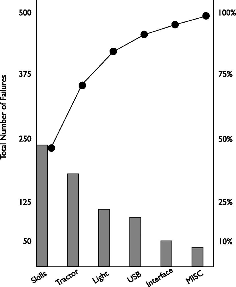 You are the project manager for a plastics manufacturer. You would like to illustrate the categories of quality failure within your project so that you and your project team can attack the largest areas of failure first. This type of chart is known as which one of the following? A. A control chart B. An Ishikawa chart C. A Pareto diagram D. A flowchart