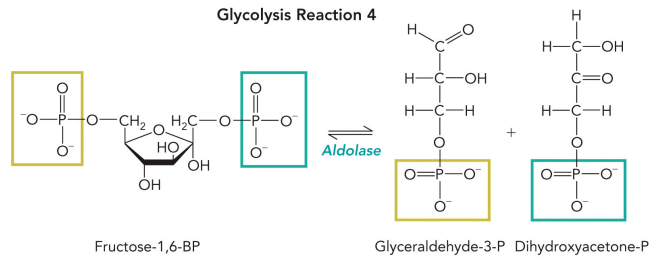 Aldolase is used to cleave Hexose into two trioses. The reaction uses Schiff base as an intermediate (10)