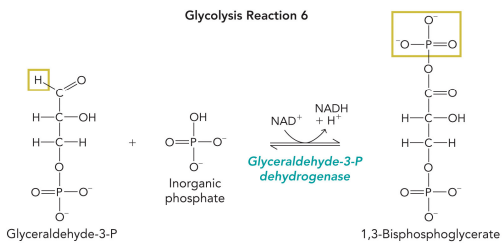 Glyceraldehyde-3-phosphate dehydrogenase is used to generate NADH from NAD+ and Pi and turns Glyceraldehyde-3-p to 1,3 bisphosphoglycerate (15)