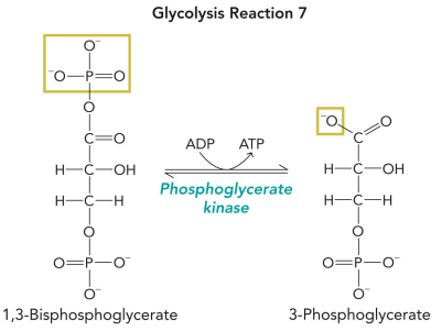 Phosphoglycerate kinase is used to phosphorylate ADP -> ATP and turns 1,3 Bisphosphoglycerate into 3-phosphoglycerate
