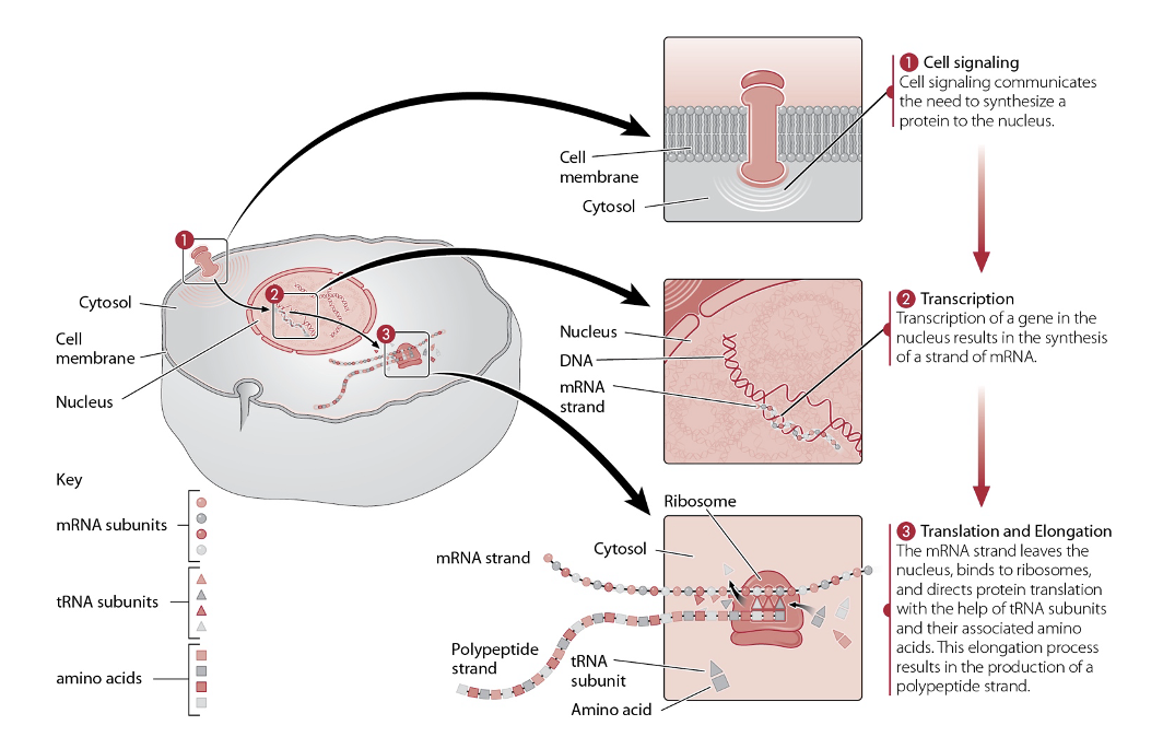 Cell signaling communicates the need to synthesize a protein to the nucleus