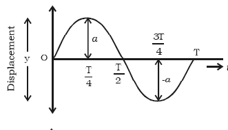 at t = 0, displacement is 0 (0 amplitude A) it’s a normal sin x graph