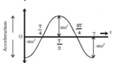 the graph of acceleration is the gradient of the velocity graph at t = 0, displacement graph has max displacement so velocity is 0 and as velocity is 0, acceleration starts at minimum value the graph of acceleration is a reflection of cos x in the x-axis (-cosx) the graph of acceleration is also the opposite of the displacement graph