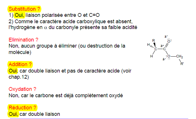 Réactivité des esters