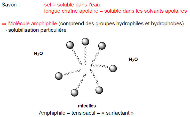 Savon = molécule amphiphile
