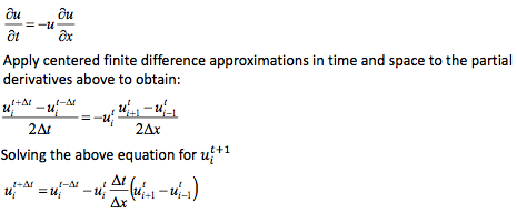 simple 1‐D advection equation for u and apply a backward finite difference in time and centered finite difference in space to obtain: