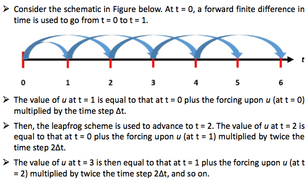 How the leapfrog time differencing scheme works in practice?