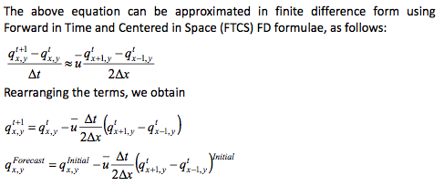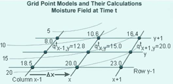 equation gives the time changes in moisture at any grid point (x,y) due to moisture advection in x‐direction.
