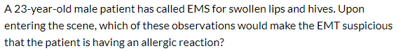 Swollen lips and oral mucosa, with a blood pressure of 84/50 mmHg