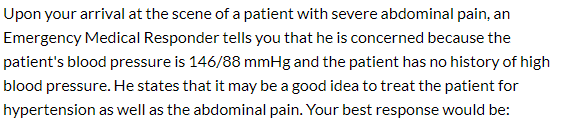 “Sometimes pain can naturally increase the blood pressure. I will take another reading so we can compare it with the baseline reading.”