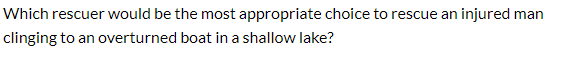 A firefighter who is wearing a personal flotation device, does not have any medical training, and is a good swimmer who is trained in water rescue