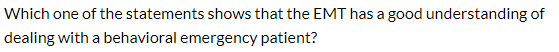 “It is okay to spend an extended amount of time on scene before transporting patients with behavioral problems