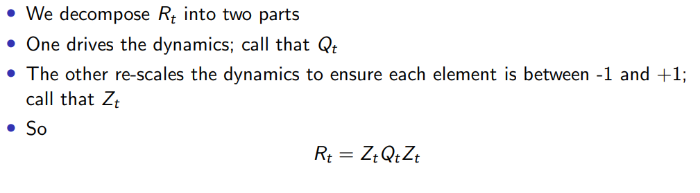 In a DCC model, how does one model the Q_t matrix of the Correlation matrix?