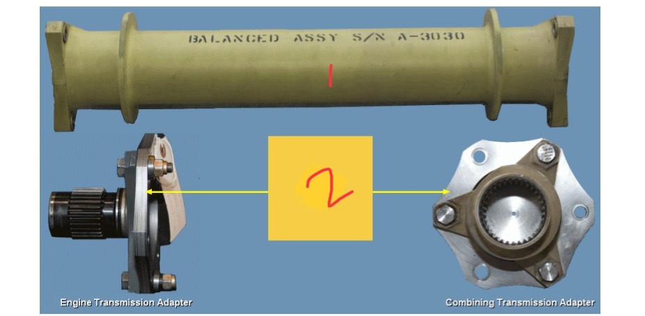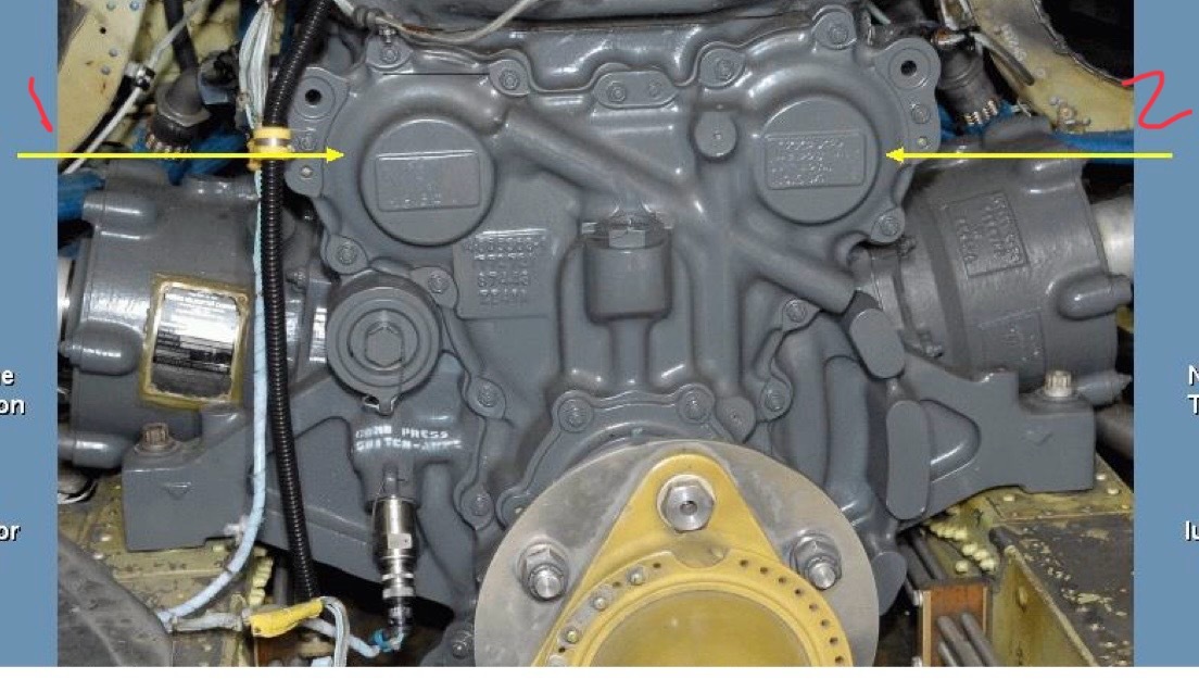 COMB XSMN OIL PUMPS. Left pump provides main lubrication to COMB XSMN & No 1 engine and right pump provides aux lube for COMB transmissions and No 2 eng XSMN. The engine transmissions do not have aux lubrication systems.