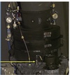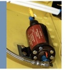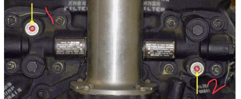 Engine transmission filter housing. Button shows the filter bypass visual indicator.