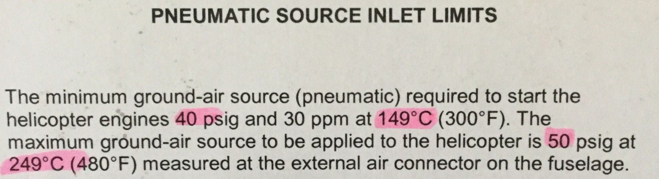 Min ground-air source req’d to start is _psi _ppm at__c.