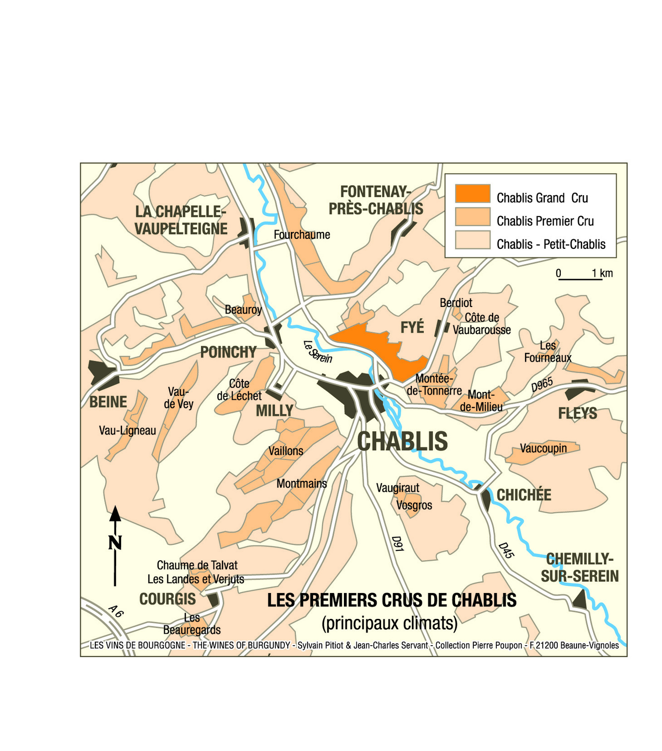 A wine from the smaller, lesser known 1er Cru Côte de Bréchain is most likely to be labeled as what larger 1er Cru?