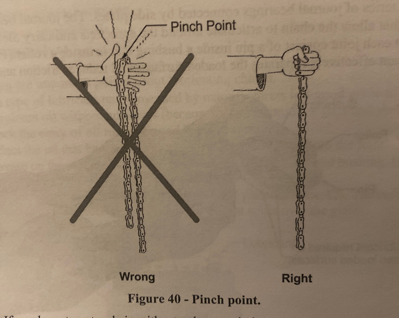 Before approaching a running chain you must: