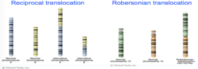 usually an exchange of material between nonhomologous chromosomes. -usually harmless and can be found in prenatal tests