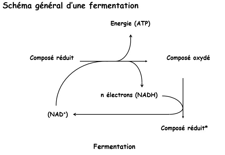 Donner le schéma général d’une fermentation et décrire le mécanisme en indiquant ou elle se réalise. Enfin, donner l’exemple pour une fermentation lactique.