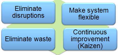 What are the 4 principle / Pillar at the hart of lean / just in time manufacturing