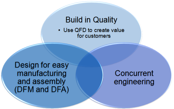 What are the 3 techniques used by lean / Just in time to improve product design