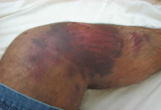 L’hématome implique une accumulation sanguine plus importante provoquant un gonflement (tuméfaction) des tissus sous-cutanés ou muscles.