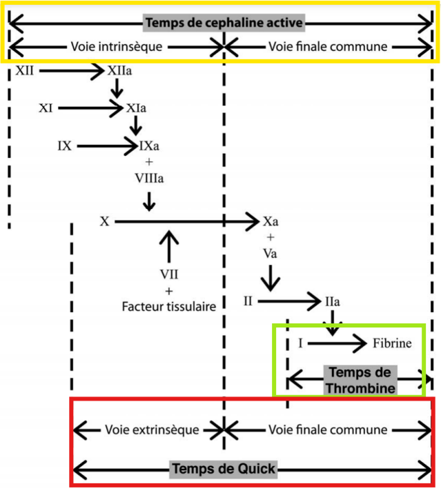Le TCA explore la voie intrinsèque (XII, XI, IX, VIII) et la voie commune ; le VII est l’unique facteur de la voie extrinsèque.
