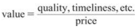 What formula describes value of a product to a customer
