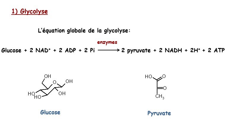 Donner l’équation bilan du lien de la glycolyse et du cycle de Krebs : respiration.