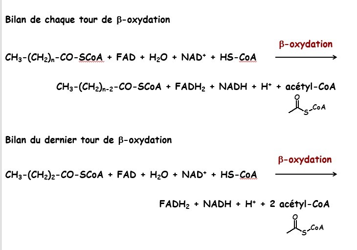 Donner le bilan du premier et dernier tour de la Beta oxydation