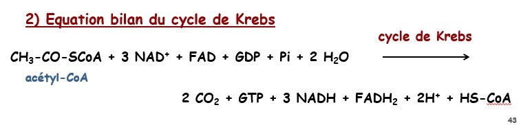 Expliquer le cycle de krebs et donner l’équation bilan du cycle.
