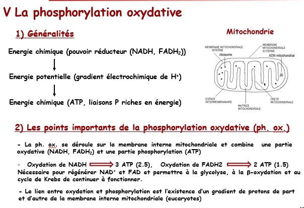 Expliquer en détail la partie phosphorylation de la phosphorylatin oxydative