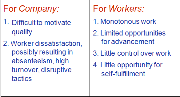 Disadvantages of specialization as a work system