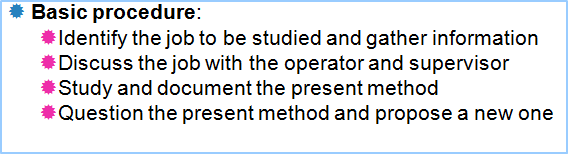 - Analyst must be familiar with task - Jobs need to be broken down into basic motions - Costly and disruptive: benefits must outweigh cost